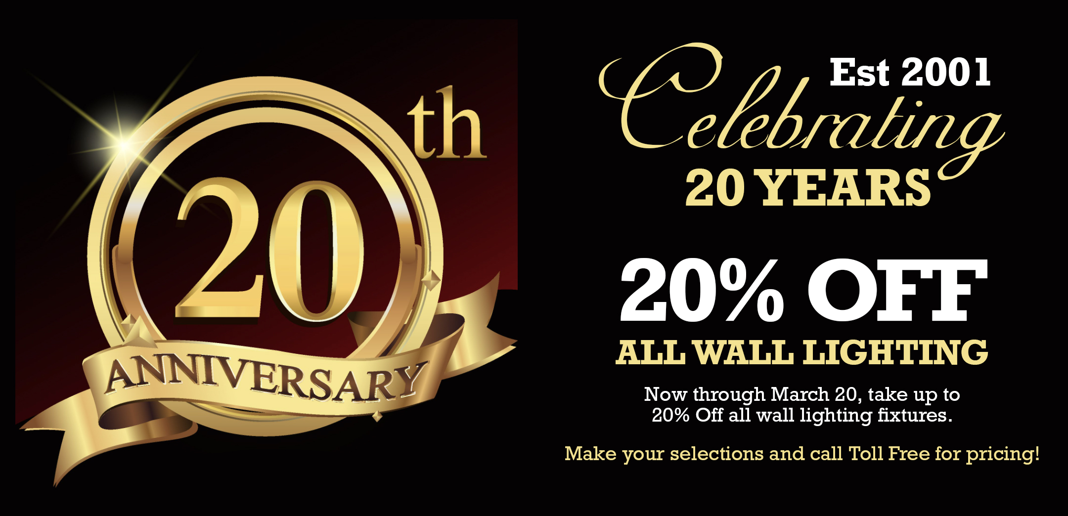 Save up to 20% on Wall Lighting Fixtures now through July 11, 2021