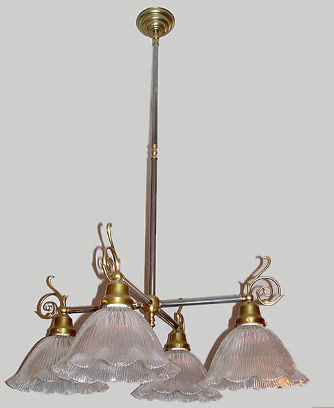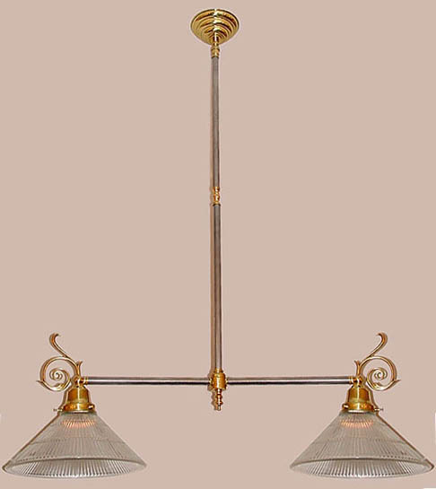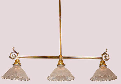 All of the antique reproduction period hanging ceiling lighting fixtures and pendant lighting you will see on these pages are available as they are. Our light fixtures can also be designed in many different ways other than how they are pictured. As with all of our light fixtures, at CLC we start with solid brass. To achieve the period or style you are after, you may modify, change or customize your selection's measurements including height and width or diameter, metal finish, glass or fabric shade, holder style, tubing style, back plate, number of arms, glass direction, swivels and more, all the way down to the smallest finial. Whether you are looking for vintage Victorian, Colonial, Arts and Crafts, Mission, Art Deco or other classic antique period styles from the 1800's and 1900’s, at Custom Lighting Company, all you need to do is ask!
