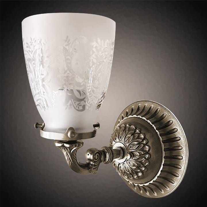 Shown in Antique Brass. Available in different Metal Finishes, different Glass, Back Plate, multiple arms and many other