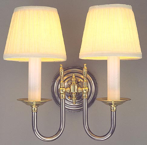 A slight variation of MODEL NS101, this one uses straight finials instead of the curved 'hook' yet still maintains the 'Country English' look with mixed metals. Colonial in style and delicate enough for placement in many settings. Looks great in other metals like polished brass, nickel and even our bronze!