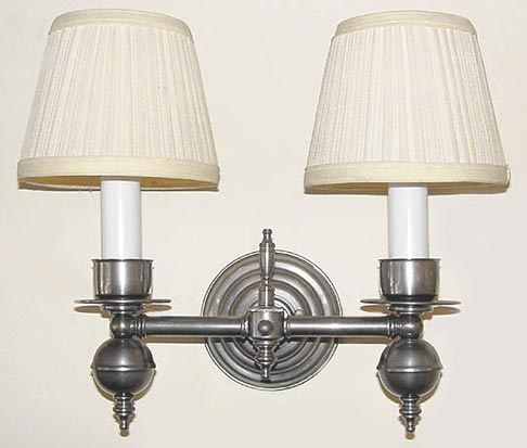 Shown in Pewter. Available in different Metal Finishes, different Glass, Back Plate, multiple arms and many other Custom Options.