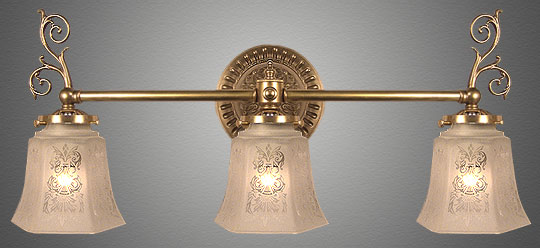 This Victorian gaslight reproduction can be placed over a bathroom vanity mirror in your bath or powder room or over a kitchen sink as task lighting. Remove the center shade, reduce the width and you have a great foyer mirror light. Lots of options here!