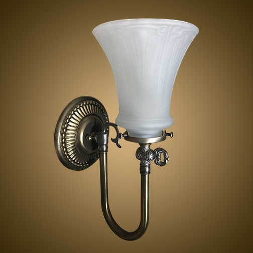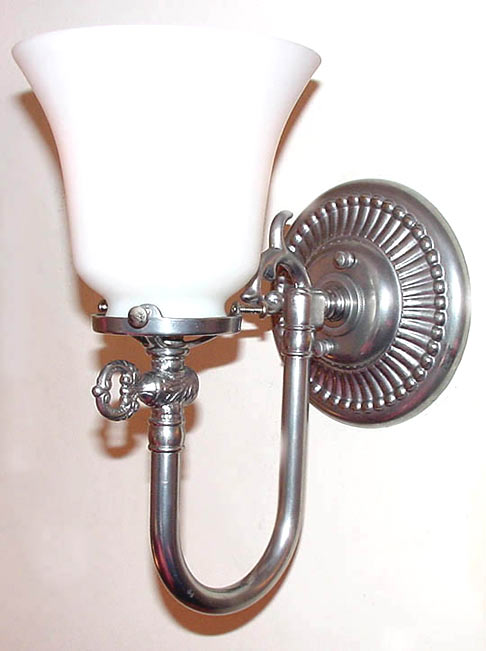 Another Federal Style gaslight wall sconce reproduction shown in pewter with opal milk shade. Looks great in other metals like polished brass, nickel and even our bronze!