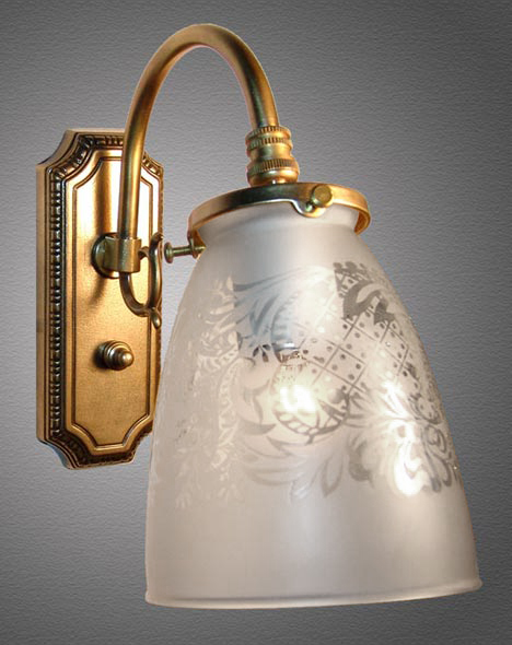 Shown in Light Antique Brass. Available in different Metal Finishes, different Glass, Back Plate, multiple arms and many other Custom Options.